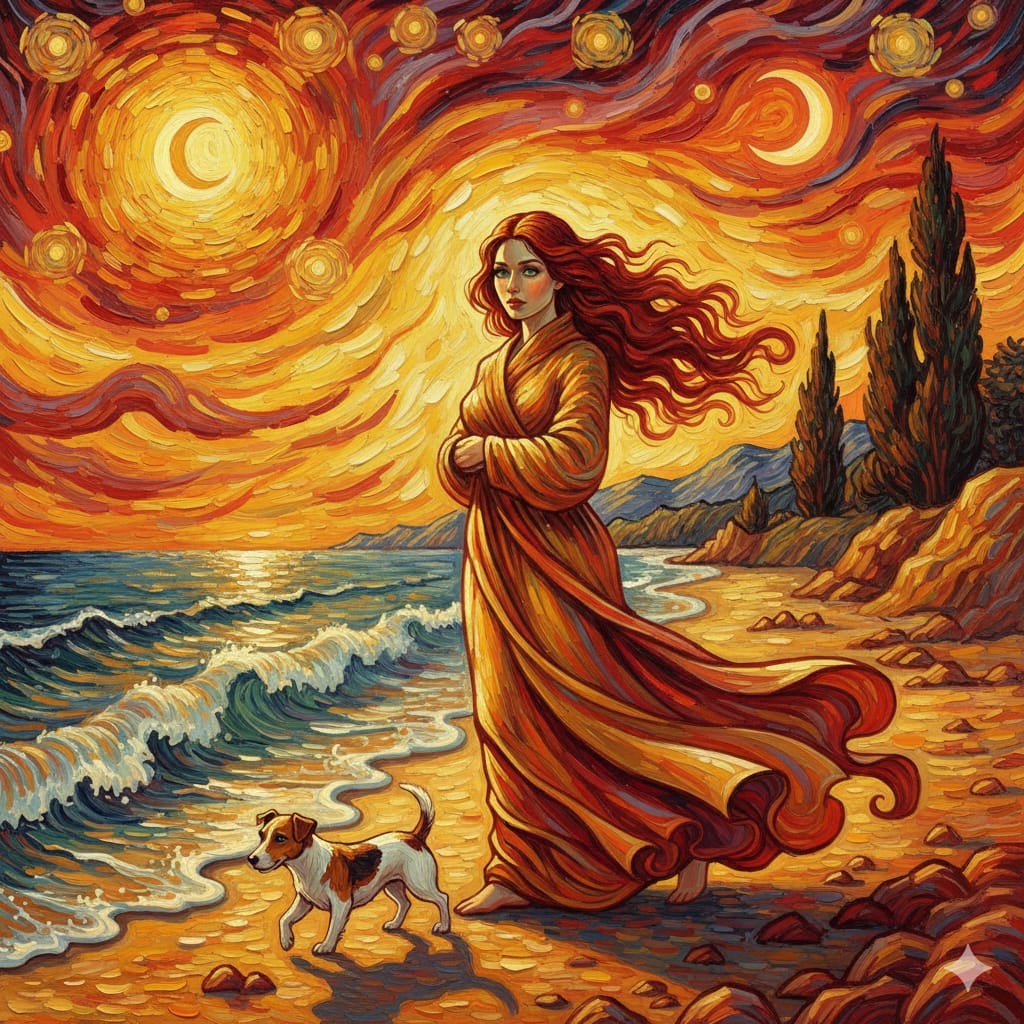 An artistic take on the wonderful Pippin and his faithful companion walking on the sea shore.